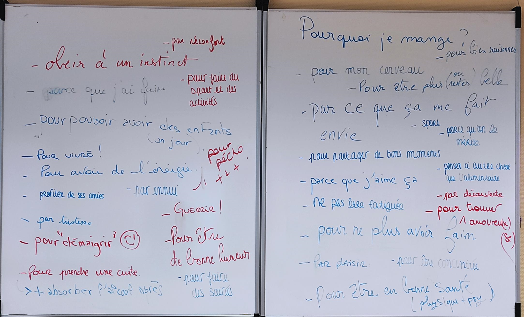 A la question qui vous paraît si simple et évidente : " pourquoi je mange ? " , les patientes ont pris le temps de répondre pour tenter de donner plus de sens au combat qu'elle mènent lors des repas qui les conduiront vers la guérison !